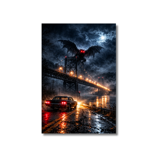 Every piece starts with a story worth staring at. Strange folklore. Unsettling sightings. The kind of lore that lingers in the back of your mind longer than it should Then we print it on glossy metal so it looks as sharp and bold as the idea itself.